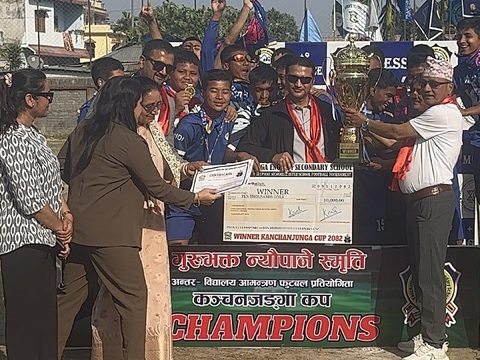 बिर्तामोड : नाइजेरियन स्ट्राइकर अबयोमी ओलुवासेउन फकुन्लेको दुई गोल प्रेरित चर्च ब्वाइज युनाइटेड झापा गोल्डकप फुटबलको नयाँ च्याम्पियन बनेको छ । सोमबार भएको फाइनल खेलमा चर्च ब्वाइजले विभागीय टोली ...